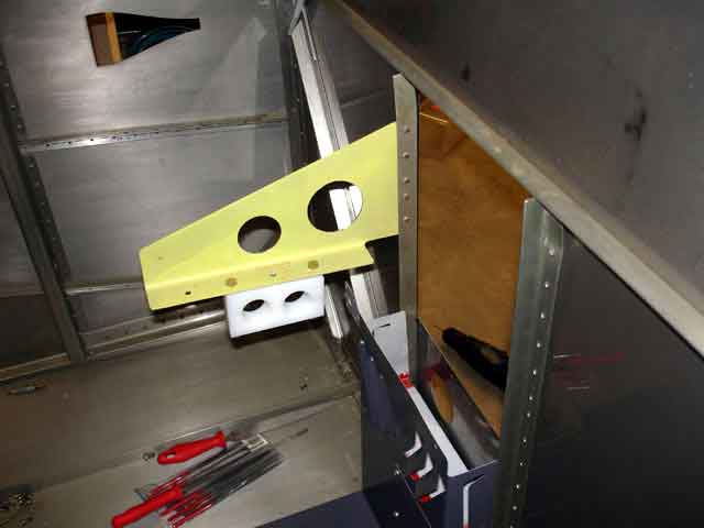 The firewall is a sheet of thin stainless steel which forms the most forward bulkhead. It serves to isolate the cabin from the engine compartment with a fireproof barrier. In teh quickbuild kit it is pretty much complete and attached to the longerons by heavy steel brackets and rivets. The Quickbuilder has to finish the firewall with the following tasks -