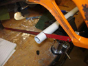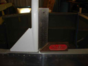 In its initial form, the brace is purposely made too long (Image 1). I slid it into the centre of the slot in the front superstructure and skin, and then aligned it with the rop bracket. It was about 3/4" too long (image 1). So I trimmed the top part of the brace (image 2), and re-fitted it to the front superstructure reinforcement angle (image 3). I then carefully drilled the top roll bar bracket and the brace tube for the 1/4" bolt. This is actually quite difficult. I used a 3/16" angle drill to get started (this could be aligned straight to the tube), and then disassembled everything for final drilling (image 4). In the end it all looked square, true and strong. On to the sliding canopy..
