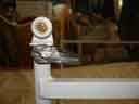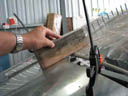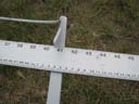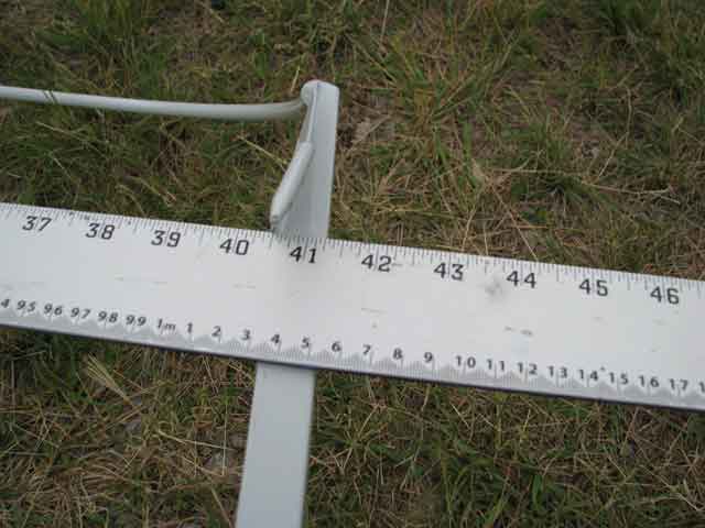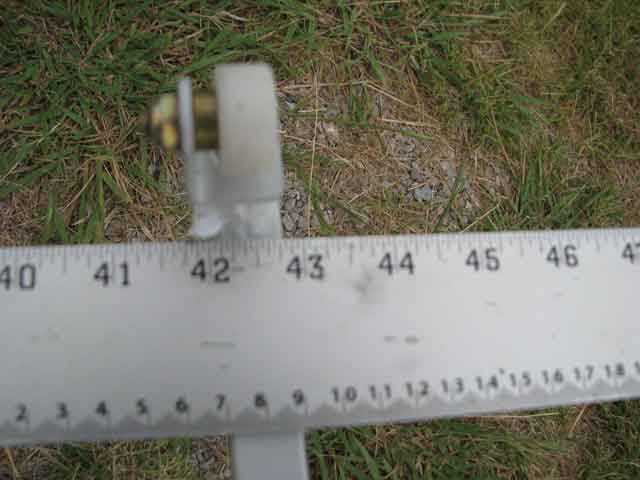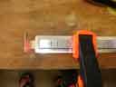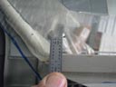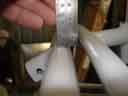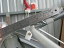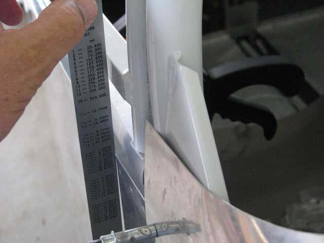 The next series of pictures were taken about a year after those above. You can see that the canopy side "inset" was still about 1/16" as per Van's instructions. Image 2 shows how to track the effect of bending the frame. You need a decent ruler (image 2) to measure the width of the frame at critical positions (e.g. at the front near the rollers (image 3), and at the rear, near the rear locating pins (image 4). I bent the frame to get these dimensions exactly right to give 1/16" inset all around the canopy frame sides. It was clear that the front bow of the canopy frame was much too high to match the apex of the roll bar, so I had to hacksaw off about 1/4" - 3/8" of roll bar to allow it to sit lower (image 5). At this stage it was clear that I needed to attack the dreaded perspex bubble.