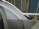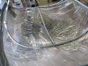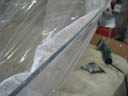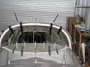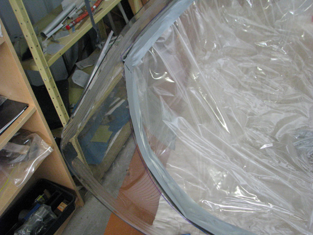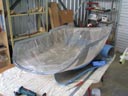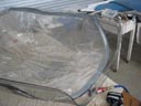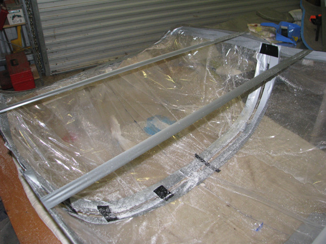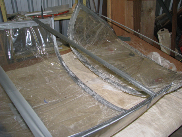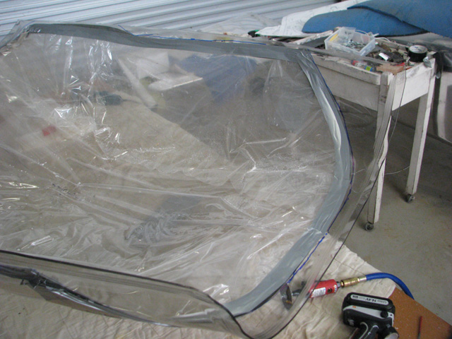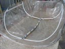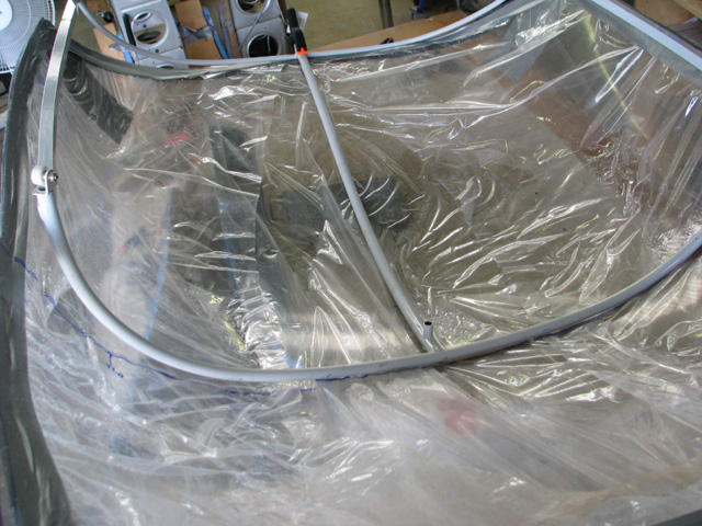 Both the slidiing canopy and tip-up versions of the RV-7 come with a large, floppy perspex moulded bubble, which contains the basic perspex structure of the windscreen and canopy. The major difference is how this bubble is divided into two separate components by a large coronal (that is an anatomical term!) cut which divides the bubble into two separate sections, front and back. In the tip-up version, the cut is made more to the rear, yielding a small rear window and a large front canopy. This canopy tips up and away from the fuselage to allow cabin access. In the sliding canopy version (my version) the same bubble is cut more to the front, yielding a smaller front section (the windscreen, which is fixed to the fuselage). amd a larger rear section which is mounted on a steel frame which can roll from back to front, much like a spitfire or hurricane canopy (Biggles rides again!) - this is the "sliding canopy" which I am trying to build here.