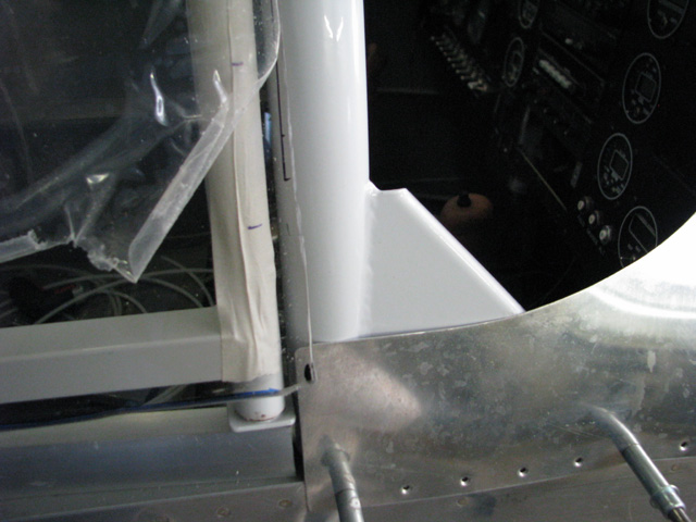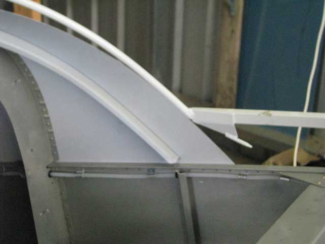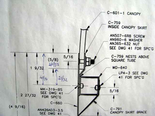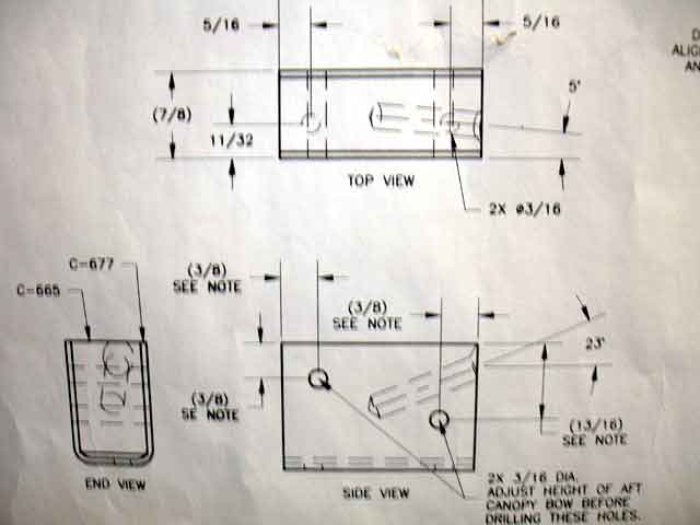 The first 5 images below show some of the idiosycrasies of the canopy frame. Images 1 and 2 show how the square section side bar really does not line up with the front bow - there is a gap! Image 3 shows the rear canopy runner/support - it has a countersunk hole waiting for a countersunk screw to attach it to the upper fuselage. Images 4 and 5 show that, with the canopy frame in its forward resting position, there is a 1/16" inset between the rear fuse skin and the rear bow of the canopy, as per spec. However, I am not going to finally l;ocate this baby until I have the perspex canopy attached to teh frame, and am trying to line up the rear sheet skirts with the fuse. To my mind, the fore/aft position of this component is probably the one thing that will best determine whether we have a good fit at the rear of the canopy, between the canopy shet and the fuse skin. I don't want any cold breezes entering the cockpit through any gaps!