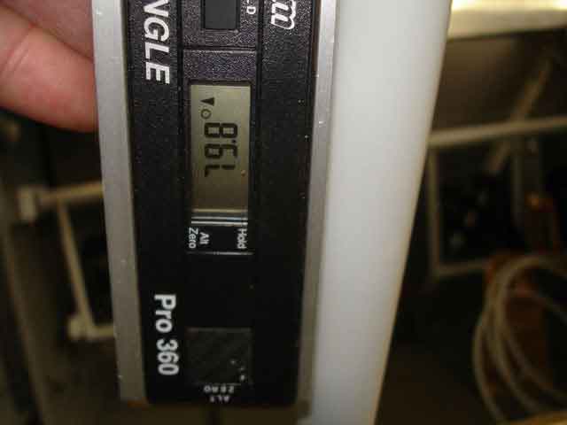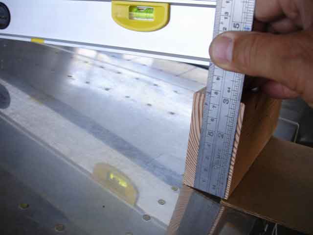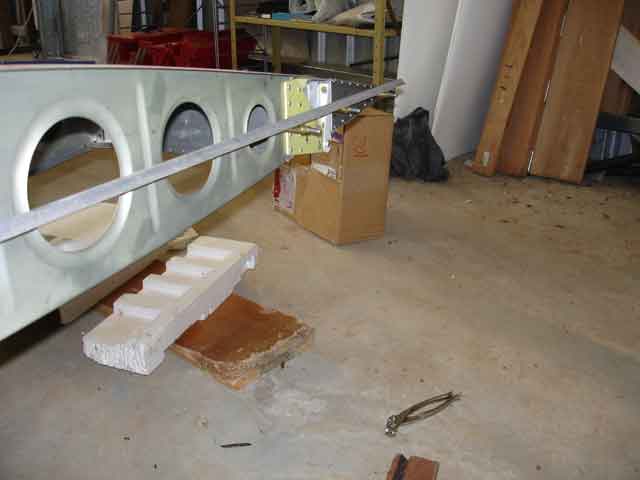 (8th and 17th October 2005) In two weeks I have spent only two days on the plane. At this rate I will never finish! Too much "real" work - next year I think I will take a long break off real work and just work on the plane till its finished. Anyway, on the 8th of October I studied the plans and read the instructions all about setting the wing incidence and wing rake. Both are set by a SINGLE bolt-hole in each wing, where the rear spars of the fuse and wings overlap. I used a plumb-bob and a tight string to check the wing rake. Both wings were exactly square with the rear spars pushed in as far as they would go.