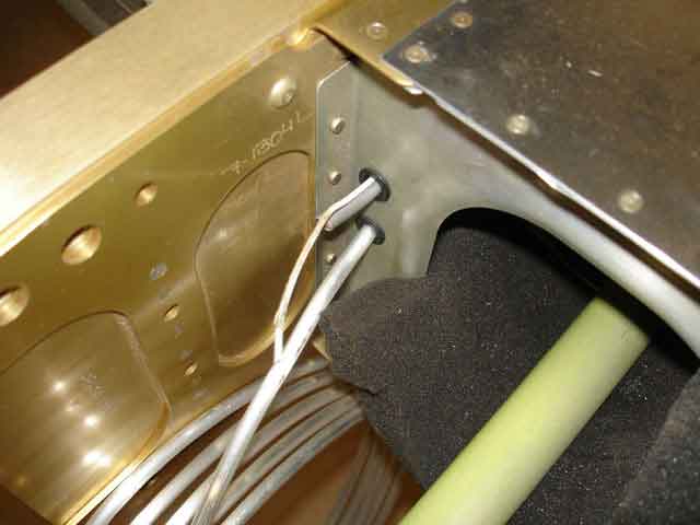 I had a look at wing wiring options. I am going to use connectors just in case I ever have to remove the wings for repairs or whatever. First image shows the fat grey shielded three-core cable for the Whelan strobe in the top grommet, along with a single strand of 16ga tefzel (for the nav light active connector). It is too tight and would be a night mare to install in every rib. The grommet below this has a length of 1/4 Al tube for pitot line, just trialing to make sure it fits. The second and third images show similar arrangements in other ribs. After talking with a few SAAA colleagues i decided that in the end I will drill 3/4" holes in every rib at Van's suggested locations, and install their black conduit. General opinion seem to be that autopilot, strobe, landing light and heated pitot is too much wire for the grommet method, but should fit easily into the conduit.