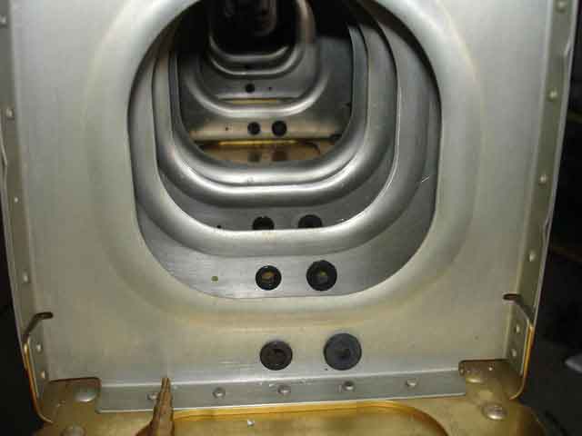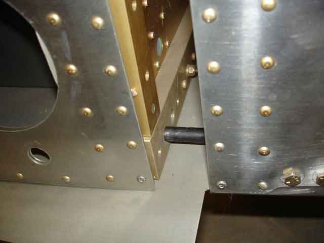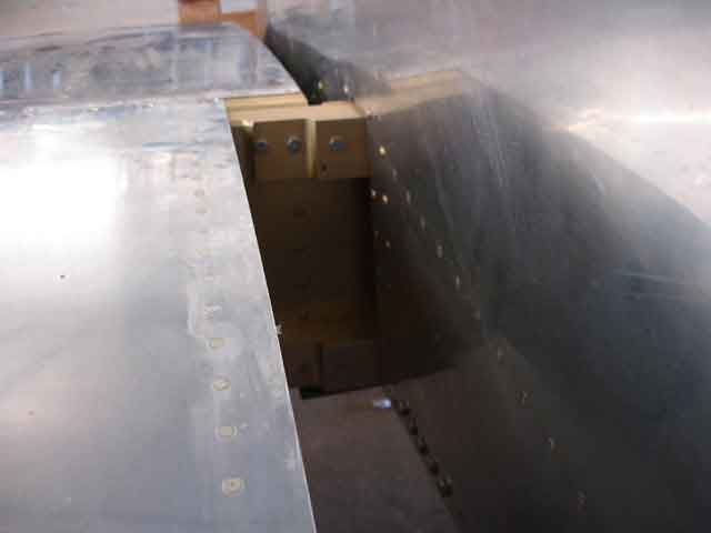 The fourth image shows an external view of the rectangular fuse hole where the wing main spar is to be insterted. the black rod is a drift pin located in position (see above). I resurfaced these so that the fit was tight, but manageable.