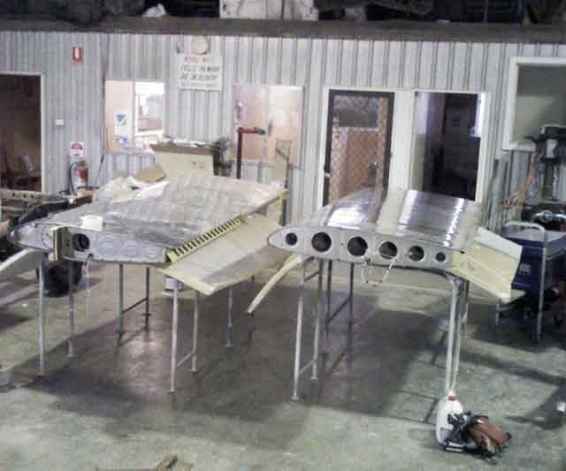 25th - 27th July 2008 I decided to ask a spray-painter mate of mine (Charlie, who is a tug pilot at Lake keepit) to help with painting the aircraft. He is a professional spray painter with all the good gear, and he had done some nice work on some gliders and he was keen to be involved. So I rolled up on Friday 25th July 2008 with both wings, tools and a heap of enthusiasm to get going.